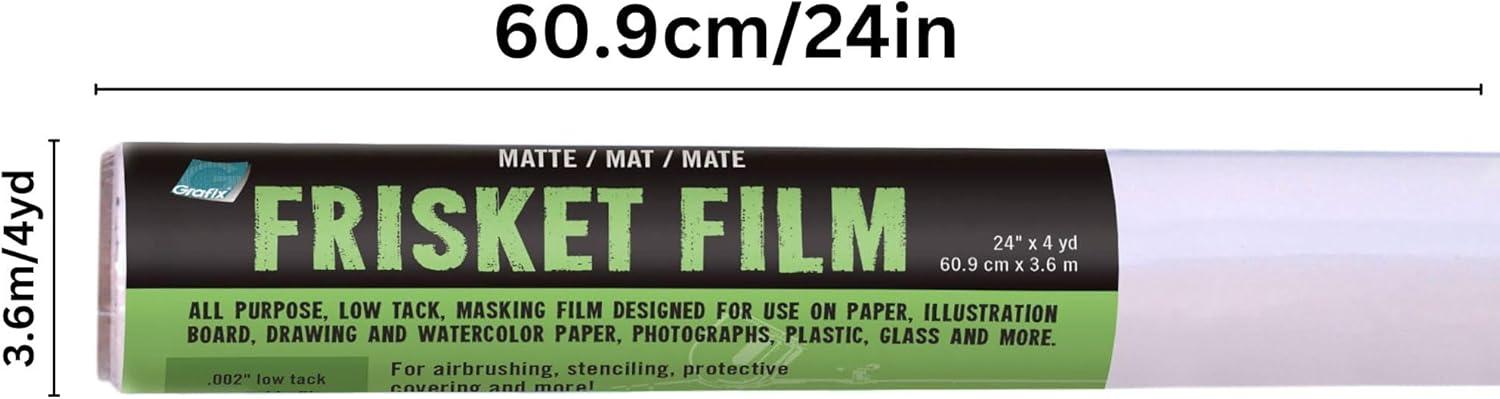 IDEAL SIZE: This 20 yard roll of Matte Low Tack Frisket Film is 16” wide. Made in the USA. Packaging may vary.